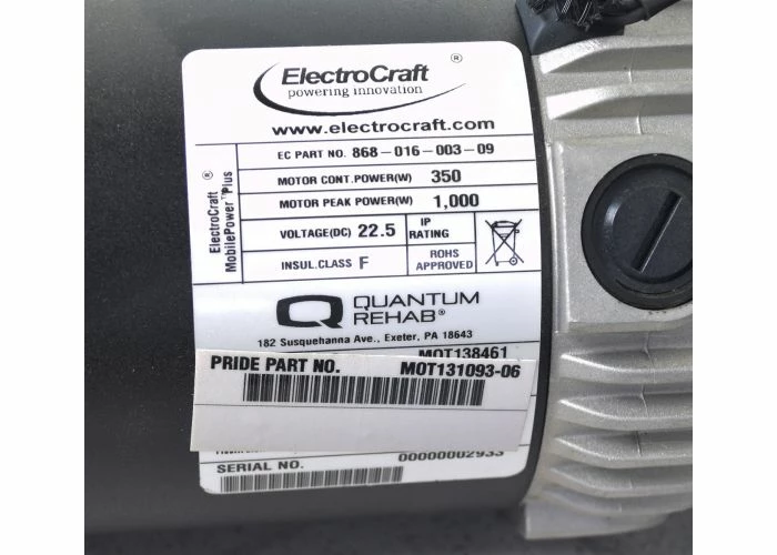 Your Quantum Q6 Edge power chair can feel like new again with a replacement motor assembly. Our I-Song 5 MPH Quantum Q6 Edge motor is made by ElectroCraft, and is available in either a left side or a right side configuration.