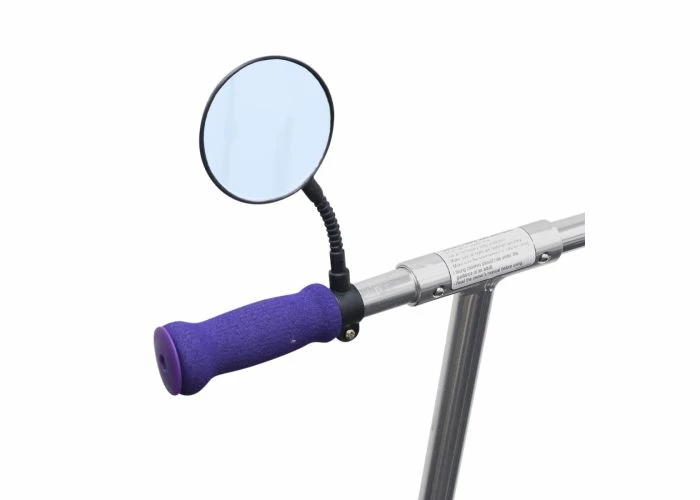 The clamp-on holder will quickly fit just about anything that uses a bar or tiller in the standard 7/8″ diameter. You can flex the little black plastic gooseneck rod from about 45 to almost 90 degrees, putting the 3-3/8″ (85 mm) mirror in the position you want. There is even a little red reflector on the dark side for added visibility. Although it is an economical alternative to much higher priced mirrors, it will do the job it was designed to do, and it will do it well.