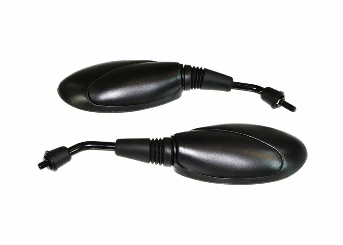 Here are two black-finish scooter mirrors in a matched left and right hand set