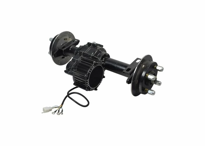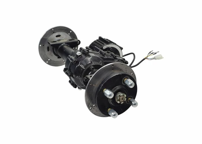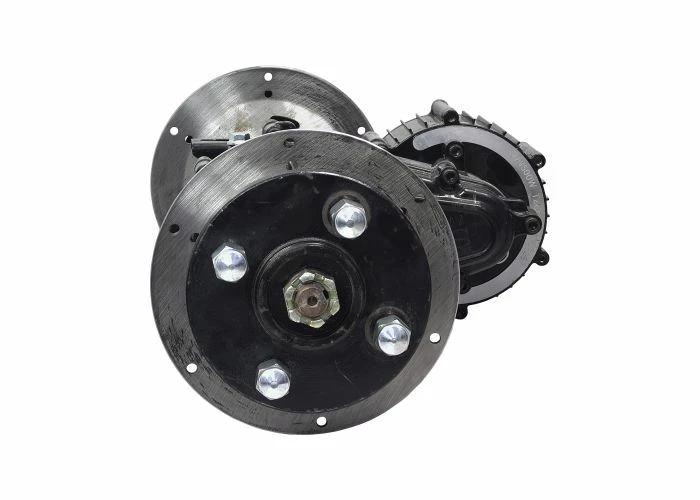 Includes electric motor, gearbox, transaxle, brake discs, wheel hubs, lug nuts, & harness